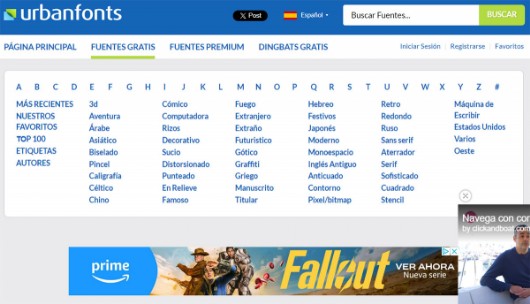 Otra página estupenda para bajar fuentes gratuitas. Es muy parecida a la página anteior.